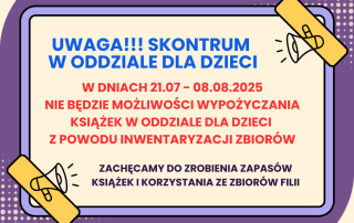 W ramach działań związanych z Nocą Bibliotek 2025 wspólnie z Księgarnią "Bestseller" Tadeusz Taborowski zapraszamy na spotkanie z Sylwią Trojanowską - pisarką, autorką sztuk teatralnych i trenerką biznesu.GDZIE - BIBLIOTEKA [...]